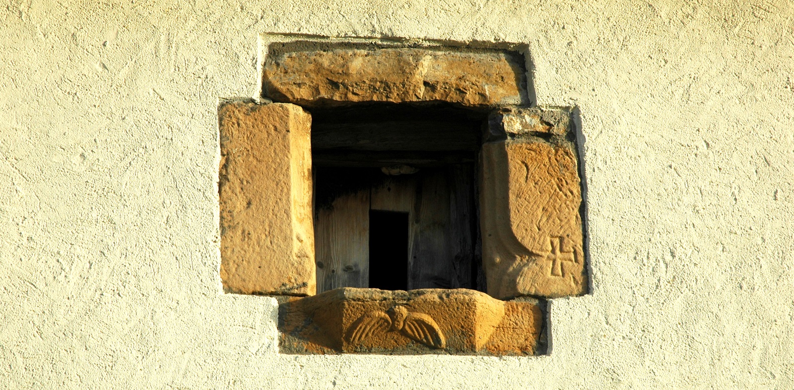 - Junto a ella, existe un pequeño cuerpo de planta cuadrada que alberga una escalera de caracol de acceso a la torre de señales. Presenta algunas saeteras muy finas en sus caras, y se cubre con una bóveda de horno.